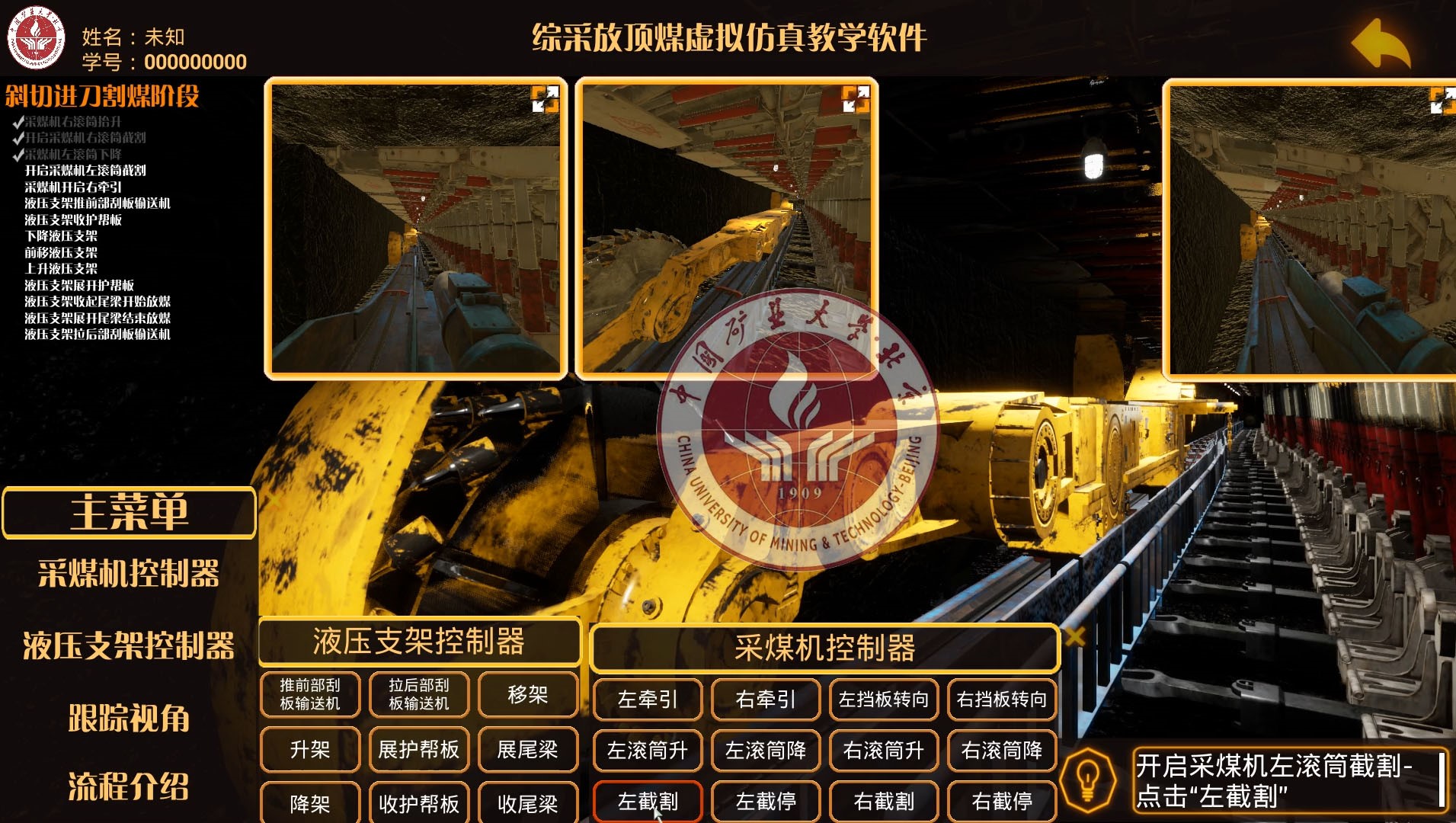 綜采放頂煤虛擬仿真教學(xué)軟件-回返割三角煤交互仿真模塊