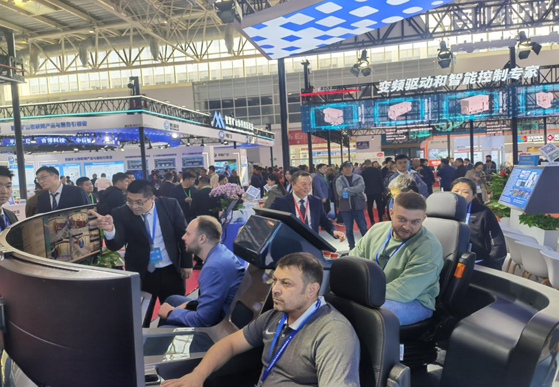 在展會現場進行公司技術驗證基地(河北燕郊)綜采工作面的遠程管控