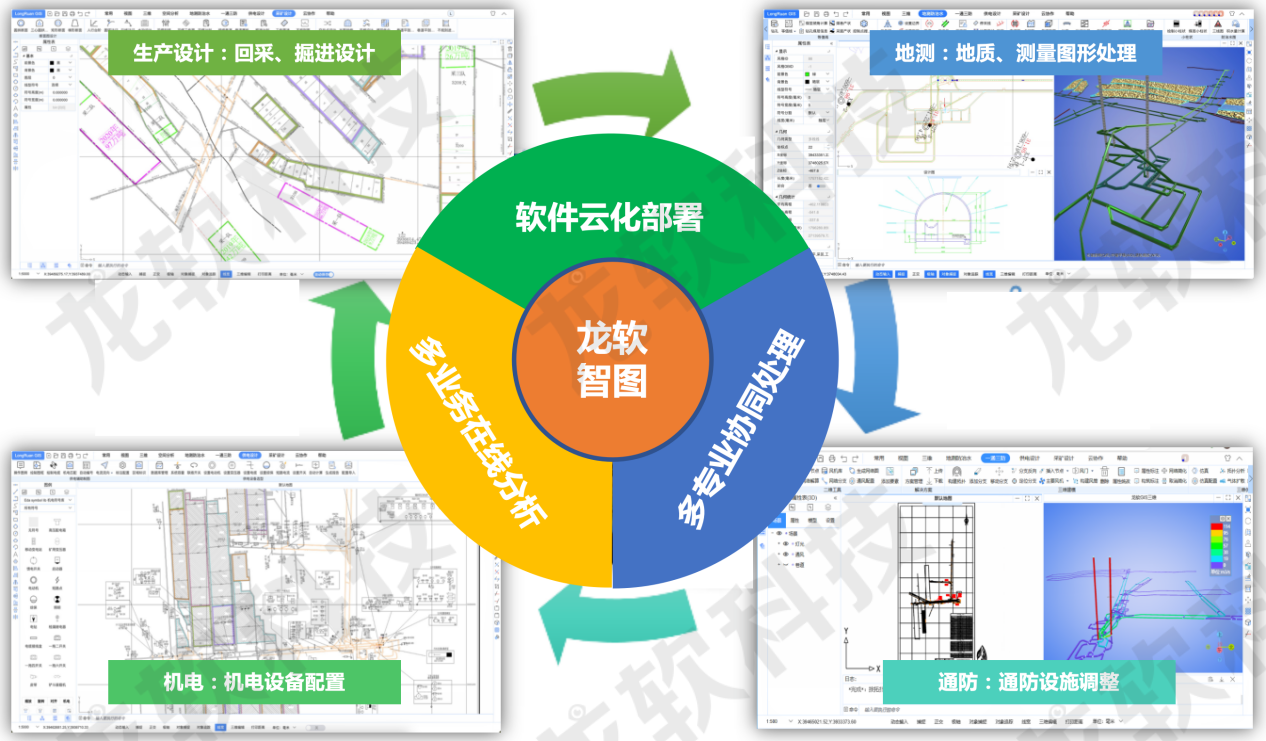 基于云服務架構的龍軟云GIS(云地理信息系統,簡稱“龍軟智圖v1.0”)龍軟科技從底層開發的、具有完全自主知識產權的新一代專業地理信息系統。該產品基于云服務、大數據、分布式協同、時空智能等技術,針對礦山地測防治水、透明化地測保障、一通三防、采礦設計和供電設計等多維專題圖形處理實際需求,采用面向服務的架構體系開發,具有實用、易用、先進、可靠、可擴展等特點。