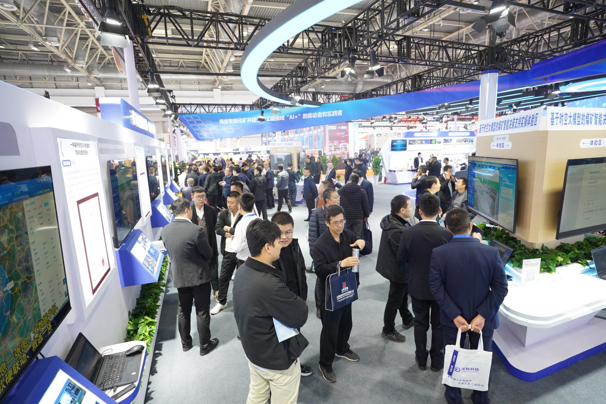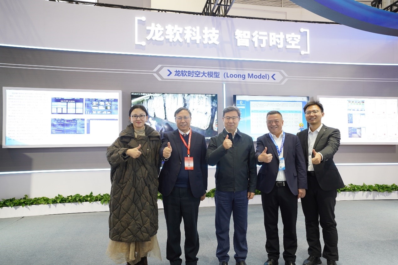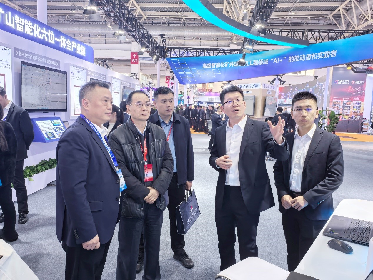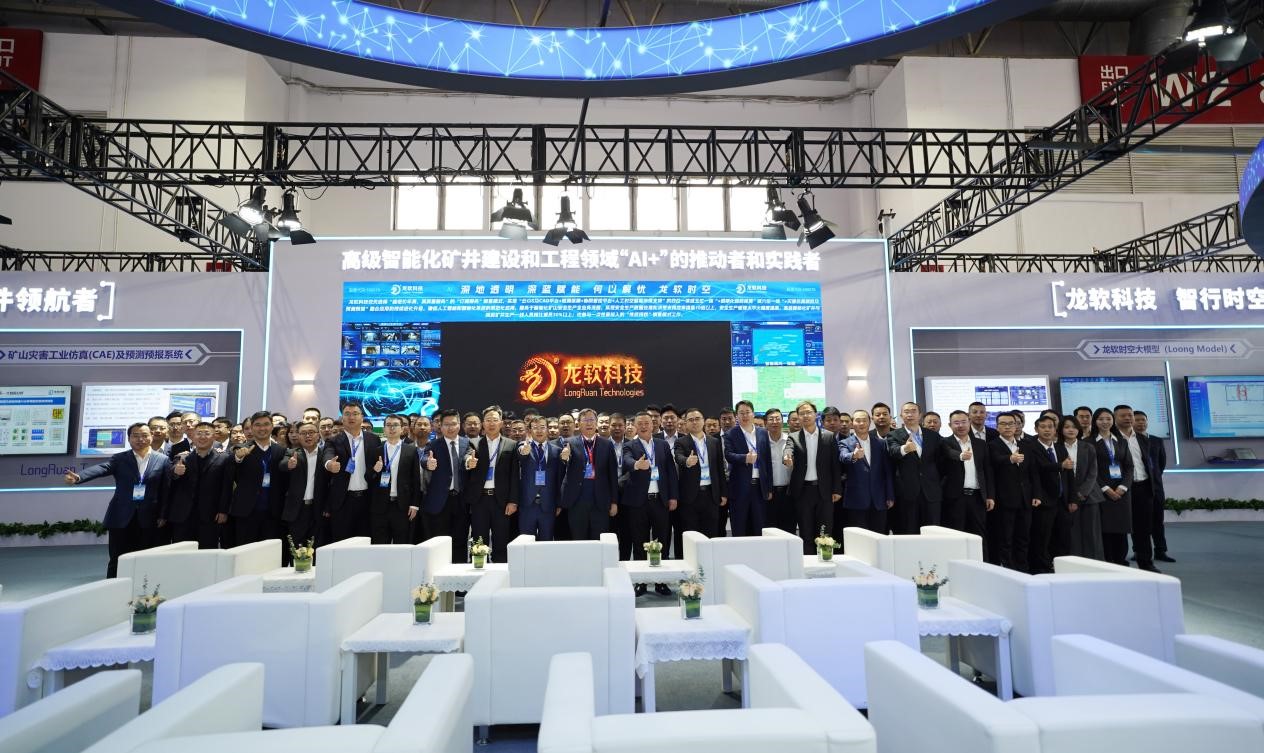 本次展會,龍軟科技不僅展位規(guī)模恢弘,面積近800平方米,更令人耳目一新的是公司以“深地+AI”為特點(diǎn)的多項(xiàng)科技成果閃耀登場,盡顯龍軟科技強(qiáng)大的創(chuàng)新生命力與宏大格局。從上市之初的以“一張圖”為主的兩類核心軟件產(chǎn)品,到如今賦能礦山全流程智能化的“多位一體”全棧式解決方案,龍軟科技已躍升為時(shí)空智能礦山工業(yè)軟件領(lǐng)域的領(lǐng)軍者,及高級智能化礦井建設(shè)與工程領(lǐng)域“AI+”創(chuàng)新的堅(jiān)定推動(dòng)者與深度實(shí)踐者。本次龍軟科技攜龍軟時(shí)空大模型(Loong Model)等15大重磅產(chǎn)品系列震撼亮相,全面展現(xiàn)公司在“人工智能+”以及“深地經(jīng)濟(jì)”國家戰(zhàn)略下的技術(shù)創(chuàng)新成果與實(shí)踐應(yīng)用。現(xiàn)場特設(shè)基于時(shí)空大模型的煤礦智能決策支持“四位一體”產(chǎn)品、龍軟智圖產(chǎn)品展示區(qū)與實(shí)操體驗(yàn)區(qū),以硬核實(shí)力吸引了大批專業(yè)觀眾及行業(yè)精英駐足觀摩、實(shí)操和深度交流。