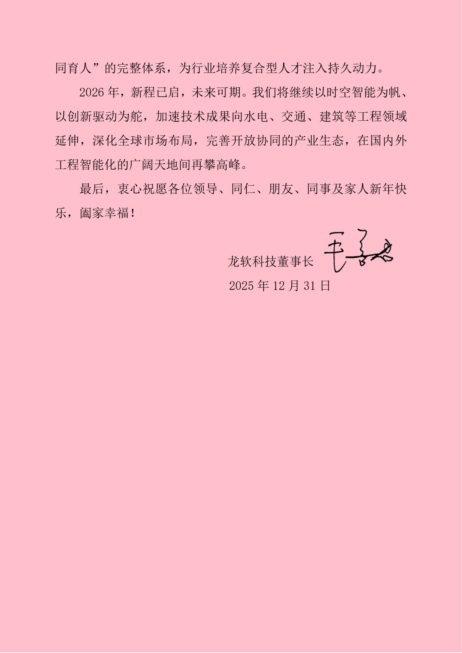 面向2026年,公司將重點(diǎn)推進(jìn)三大戰(zhàn)略:(1)加速時空智能等創(chuàng)新業(yè)務(wù)在多領(lǐng)域(礦山、水利、交通、建筑……)的落地,加快龍軟時空大模型2.0、“龍軟智圖GIS+CAD”云服務(wù)擴(kuò)展功能和系統(tǒng)的研發(fā)進(jìn)程,強(qiáng)化多模態(tài)處理與跨場景適配能力,向通用工程領(lǐng)域全面推進(jìn);(2)深化訂閱制模式,完善“技術(shù)-服務(wù)-生態(tài)”體系,提升客戶黏性;(3)加大“一帶一路”沿線國家市場拓展力度,推動核心產(chǎn)品規(guī)模化出海。同時,持續(xù)深化與高校、龍頭企業(yè)及大模型生態(tài)伙伴的合作,以更開放的姿態(tài)構(gòu)建時空智能多元化產(chǎn)業(yè)生態(tài)。