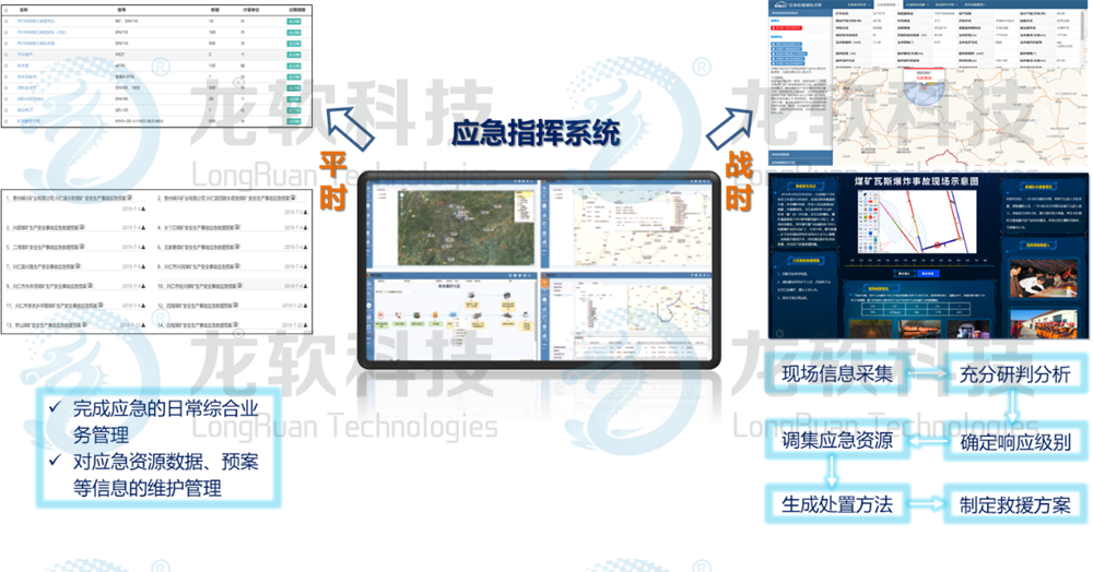 (5)實現(xiàn)應急管理與救援智能化。以應急指揮系統(tǒng)為核心,按照“平戰(zhàn)結(jié)合”的原則進行設計,在“平時”,完成對應急資源數(shù)據(jù)的管理;在戰(zhàn)時,通過建立應急救援一張圖和智能救援方案輔助決策實現(xiàn)對安全生產(chǎn)事故的統(tǒng)一調(diào)度和指揮。